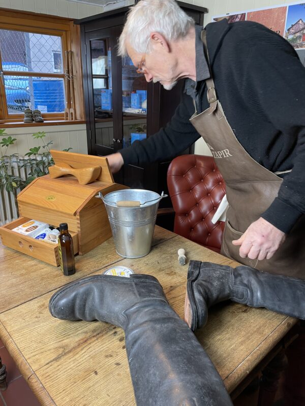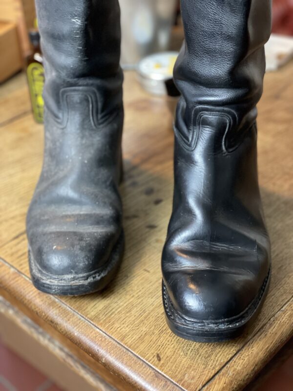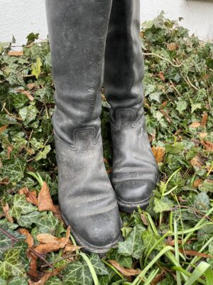 rechts: Reitstiefel nach ausgiebiger Schuhpflege mit Tapir!
