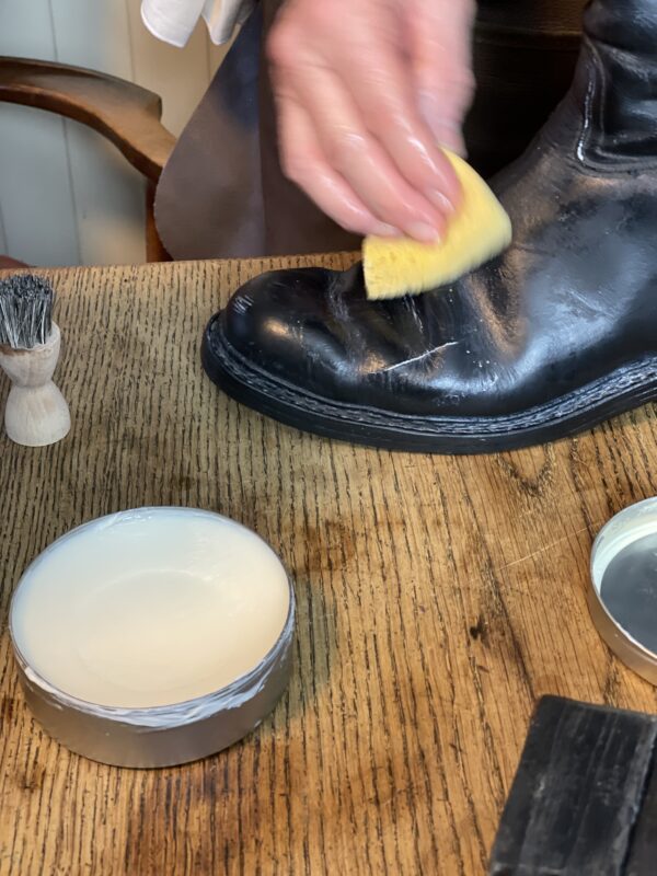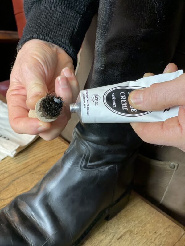 Durch das Lederöl und Lederpflegecreme sind die Schuhe auch direkt vor Feuchtigkeit geschützt und bereit für den nächsten Einsatz im Stall oder auf dem Pferd.