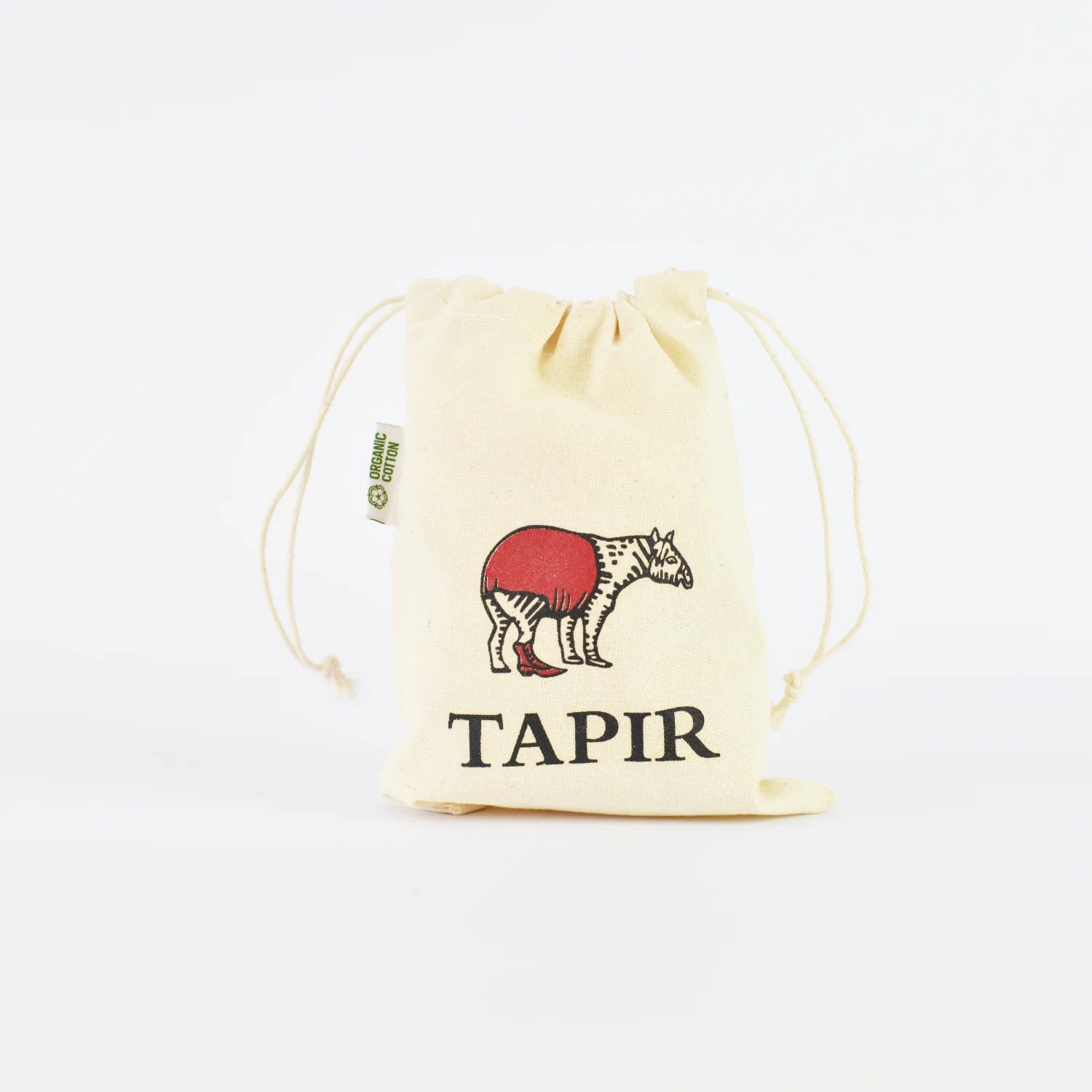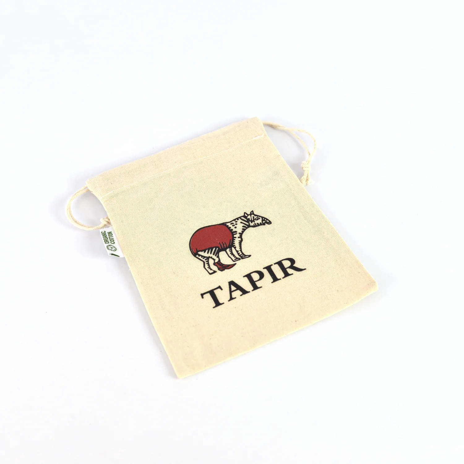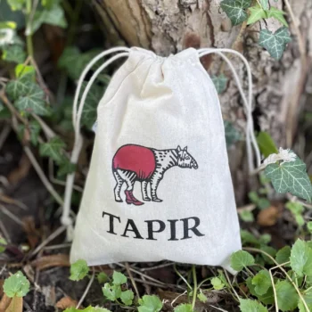 Kleiner Kordelzugbeutel – 15×20 cm, 100% Bio-Baumwolle, mit Tapir-Druck Lederfett