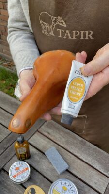 Für einen noch intensiveren Schutz und eine sichtbare glänzende und wasserabweisende Oberfläche können Sie sich auch stattdessen für Tapirs Lederpflegecreme entscheiden. Einfach mit einer Auftragsbürste auftragen, einmassieren und abschließend mit der Glanzbürste bis zum gewünschten Glanz polieren.