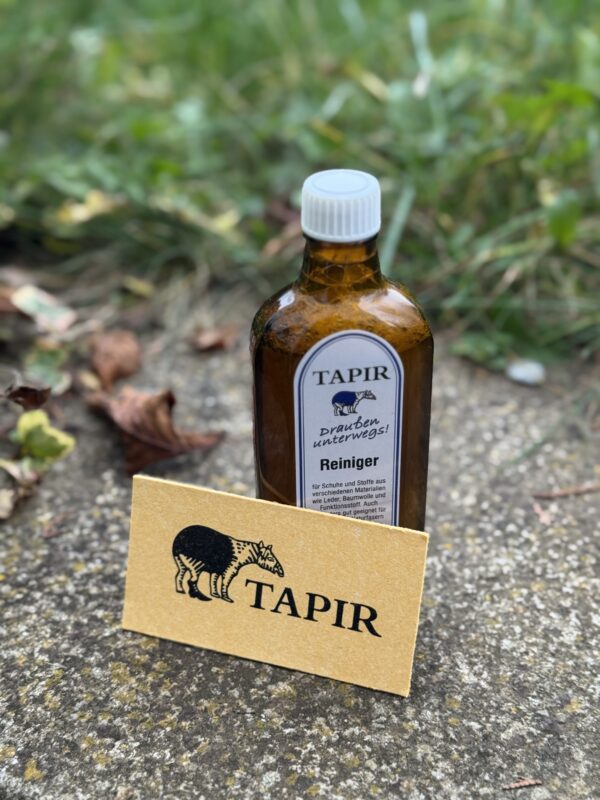 Handelt es sich um stärkere Flecken oder hartnäckige Verschmutzungen, geben Sie einfach einige Tropfen des Tapir Reinigers direkt auf den angefeuchteten im Set beiliegenden Schwamm und reiben ihn so lange ein, bis ein Schaum entsteht. Spülen Sie den Reiniger bzw. Schaum nach einer Einwirkzeit anschließend gründlich mit Wasser aus. Bei Bedarf kann dieser Vorgang wiederholt werden. Achten Sie bitte immer auf die jeweiligen Herstellerangaben auf den Textilien. Tun Sie also nicht nur Ihren Schuhen und Kleidung etwas Gutes, sondern auch der Umwelt- dank konsequent ökologischem Produkt, welches nur aus natürlichen Rohstoffen besteht und nebenbei noch vegan ist. Probieren Sie den Reiniger gerne aus – denn nach dem Ausflug ist vor dem Ausflug.